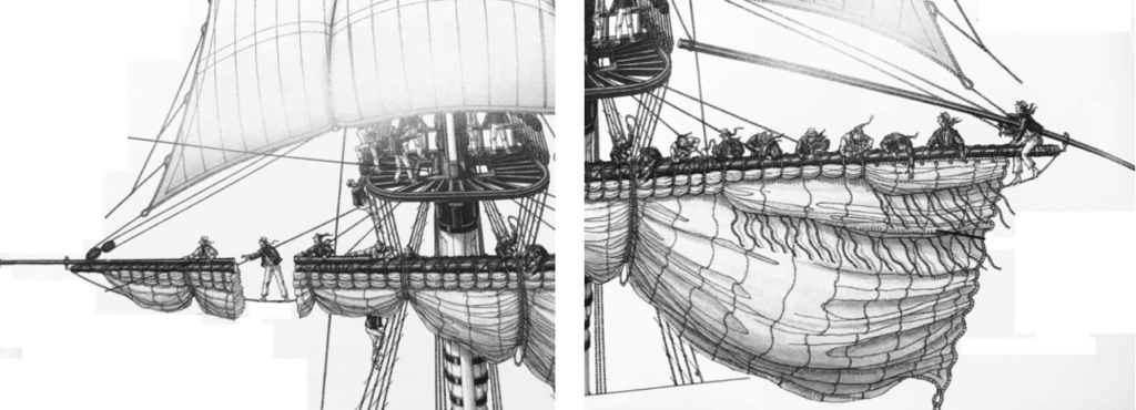 Πηγή: Rigging Period Ship Models, A step-by-step Guide to the Intricacies of Square-Rig, Lennarth Petersson, CHATHAM PUBLISHING LONTON. (page 85) – (Copyright Lennarth Petersson).