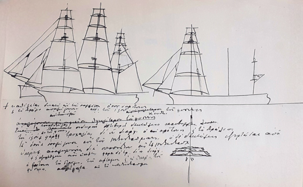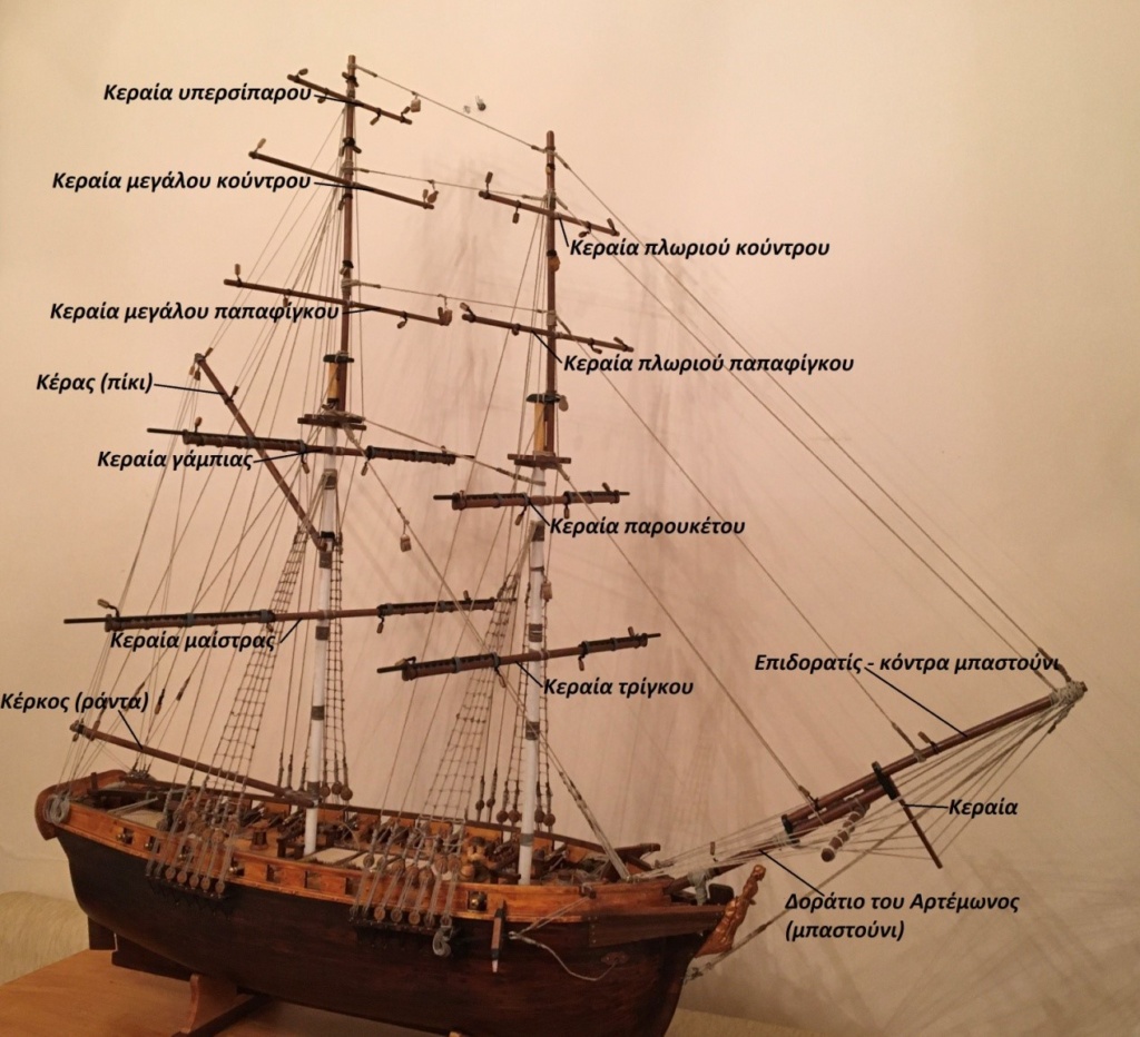 Στο παραπάνω χειρόγραφο αποτυπώνετε με έναν μοναδικό τρόπο η εξαρτία των Ελληνικών ιστιοφόρων πλοίων της προεπαναστατικής και επαναστατικής περιόδου. Αποτελεί το μοναδικό ίσως χειρόγραφο τεκμήριο της περιόδου όπου διακρίνονται με σαφήνεια οι πέντε σταυρώσεις που έφεραν στα πανύψηλα κατάρτια τους τα Ελληνικά σκαριά, κάτι που φάνταζε αδιανόητο ακόμα και τους ικανότατους Εγγλέζους  ναυτικούς, οι οποίοι αν τύχαινε να συλλάβουν Ελληνικό πλοίο αφαιρούσαν τα υψηλότερα πανιά προκειμένου να μπορέσουν να ταξιδεύσουν με ασφάλεια το πλοίο.