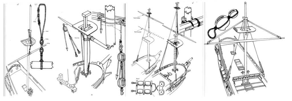 Πηγή: Rigging Period Ship Models, A step-by-step Guide to the Intricacies of Square-Rig, Lennarth Petersson, CHATHAM PUBLISHING LONTON. (page 22-43) – (Copyright Lennarth Petersson).