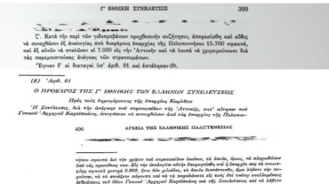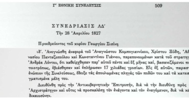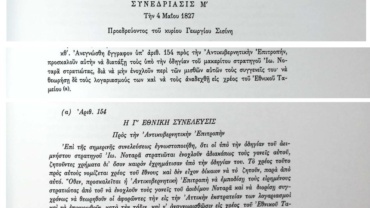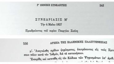 Στη συνεδρίαση Μ΄ της 4ης Μαΐου 1827 διαβάστηκε σχέδιο ψηφίσματος σχετικά με την εγκατάσταση των Σμυρναίων στην περιοχή του Ισθμού.
