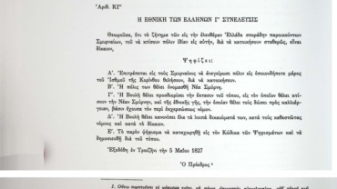 Ψήφισμα ΚΓ-5ης Μαΐου 1827 σχετικά με την ανέγερση πόλης από Σμυρναίους στην περιοχή του Ισθμού της Κορίνθου.