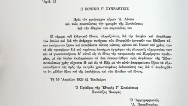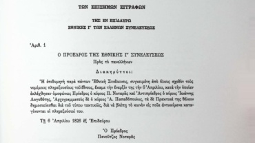 Αρ. 1 της 6ης Απριλίου 1826: Μέλη Γ΄Εθνοσυνέλευσης
