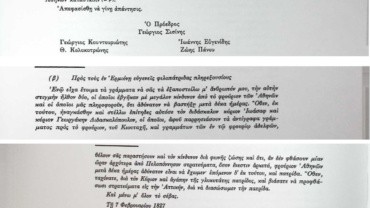 Γράμμα του Αντιστράτηγου Πανούτσου Νοταρά σχετικά με την δεινή κατάσταση στο φρούριο της Ακρόπολης.
