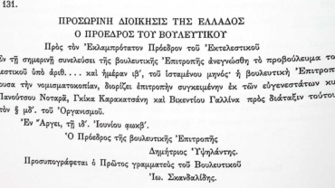 Στο πρ. 131 του Βουλευτικού συζητήθηκε η έγκριση κοπής νομισμάτων.