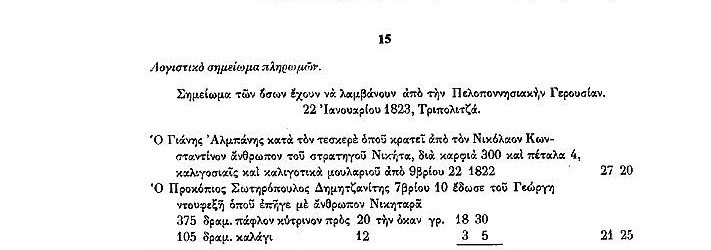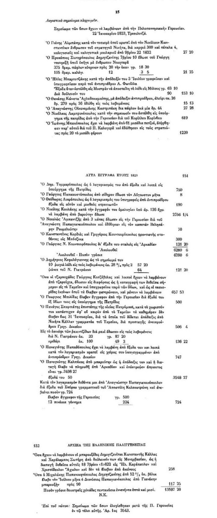 Το παρόν έγγραφο αποτελεί λογαριασμό της Πελοποννησιακής Γερουσίας.