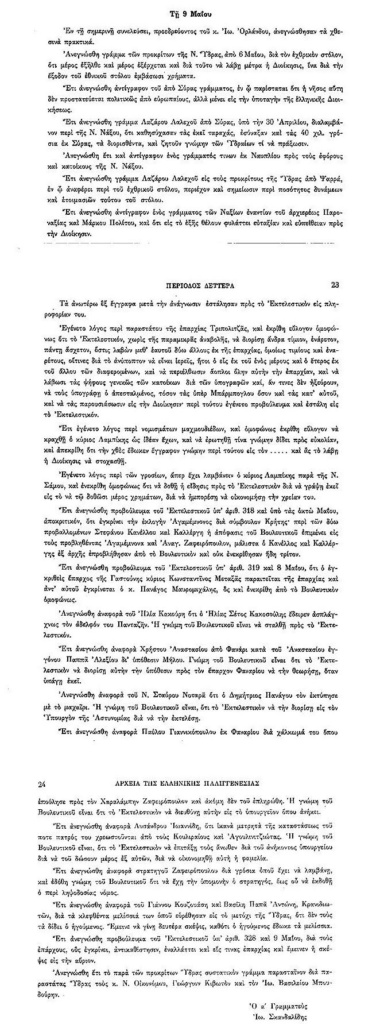 ΑΡΧΕΙΑ ΕΛΛΗΝΙΚΗΣ ΠΑΛΙΓΓΕΝΕΣΙΑΣ-2-9 Μαΐου 1823,παρ.6 Στη συνέλευση της 9ης Μαΐου 1823, διαβάστηκε γράμμα κάποιων Ναξίων οι οποίοι στέφονται κατά του Αρχιερέως Παροναξίας ζητώντας να έχει ευπείθεια και ευταξία προς τη Διοίκηση. Αρχιερέας ΠαροναξίαςΒουλευτικό ΣώμαΕκτελεστικό ΣώμαΕλλάδαΙερωμένοιΙω.ΟρλάνδοςΙω.ΣκανδαλίδηςΜάρκος ΠολίτηςΝάξοςΝησιάΝησιά Αιγαίου Πελάγους