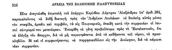 ΑΡΧΕΙΑ ΕΛΛΗΝΙΚΗΣ ΠΑΛΙΓΓΕΝΕΣΙΑΣ-2-14 Ιουνίου 1824,παρ.5 Στη συνέλευση της 14ης Ιουνίου 1824 διαβάστηκε επιστολή για την καλλιέργεια σταφίδας, αμπελιού και περιβολικών από έναν μόνο καλλιεργητή γιατί οι υπόλοιποι υπαναχώρησαν. Άγιος Βρεσθένης ΘεοδώρητοςΑλέξανδρος ΛάμπρουΒουλευτικό ΣώμαΕκτελεστικό ΣώμαΕλλάδαΕπαρχίεςΈπαρχοςΈπαρχος ΚορίνθουΙω.ΣκανδαλίδηςΚορινθίαΚόρινθοςΠελοπόννησοςΣταφίδα