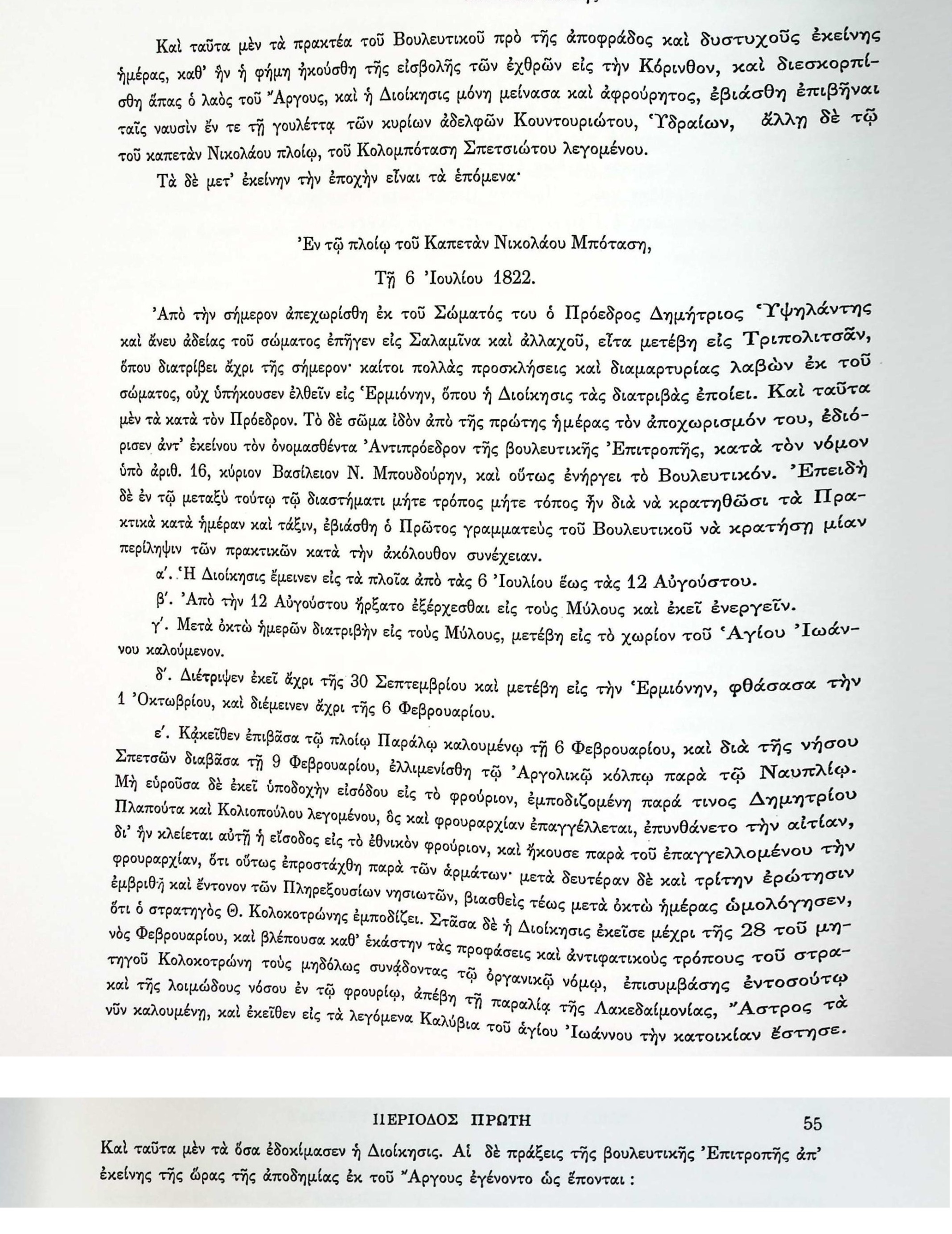 ΑΡΧΕΙΑ ΕΛΛΗΝΙΚΗΣ ΠΑΛΙΓΓΕΝΕΣΙΑΣ-1-6 Ιουλίου 1822 Περιγραφή της πορείας της Διοίκησης μετά την εισβολή στην Κόρινθο. Άγιος ΙωάννηςΑργολίδαΆστροςΒασίλειος Ν.ΜπουδούρηςΒουλευτικό ΣώμαΔημητράκης ΠλαπούταςΔημήτριος ΥψηλάντηςΕκτελεστικό ΣώμαΕλλάδαΕρμιόνηΘ.ΚολοκοτρώνηςΙστιοφόραΙω.ΣκανδαλίδηςΚολλιόπουλοςΚορινθίαΚόρινθοςΛοιμόςΜύλοι ΆργουςΝαύπλιοΝησιά Αργοσαρωνικού ΚόλπουΠελοπόννησοςσαλαμίναΣκάφη