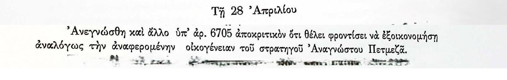 ΑΡΧΕΙΑ ΕΛΛΗΝΙΚΗΣ ΠΑΛΙΓΓΕΝΕΣΙΑΣ, τ.7, σελ.232 Πρακτικά τακτικών συνεδριάσεων Βουλευτικού Σώματος Γ’Περιόδου-28 Απριλίου 1825-Σχετικά με την φροντίδα της οικογένειας του αποθανόντος Αναγνώστου Πετμεζά. Αναγνώστης ΠετμεζάςΒουλευτικό ΣώμαΕλλάδαΠετμεζαίοιΠρόνοια