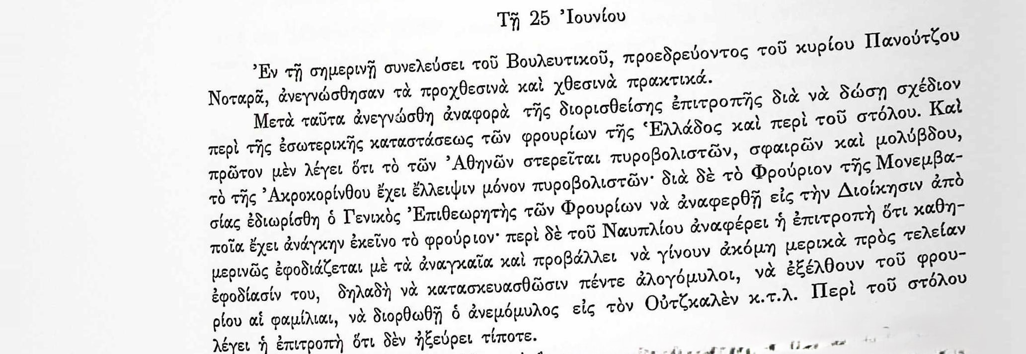 ΑΡΧΕΙΑ ΕΛΛΗΝΙΚΗΣ ΠΑΛΙΓΓΕΝΕΣΙΑΣ, τ.7, σελ.274 Πρακτικά τακτικών συνεδριάσεων Βουλευτικού Σώματος Γ’Περιόδου-25 Ιουνίου 1825-Σχετικά με το φρούριο της Ακροκορίνθου. ΑθήναΑκροκόρινθοςΒουλευτικό ΣώμαΔιοίκησηΕκτελεστικό ΣώμαΕλληνικός στόλοςΚορινθίαΚόρινθοςΜονεμβασιάΝαύπλιοΠολεμοφόδιαΦρούρια