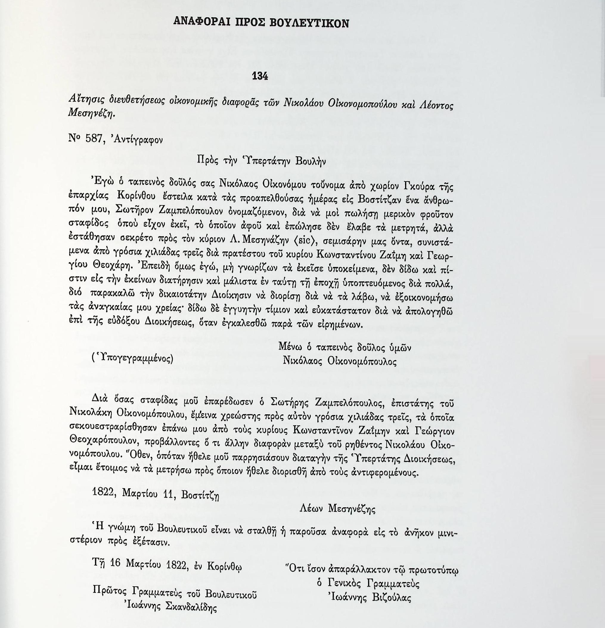 ΑΡΧΕΙΑ ΕΛΛΗΝΙΚΗΣ ΠΑΛΙΓΓΕΝΕΣΙΑΣ, τ.9, σελ.171, αρ.134 «Λυτά Έγγραφα» Α’ & Β’ Βουλευτικής Περιόδου-Αναφορές προς το Βουλευτικό, Αίτημα για διευθέτηση οφειλής από πώληση σταφίδας. Βοστίτσα-ΑίγιοΒουλευτικό ΣώμαΓεώργιος ΘεοχάρηςΓεώργιος ΘεοχαρόπουλοςΓκούραΓρόσιαΕλλάδαΕπαρχίεςΙωάννης ΒιζούλαςΚορινθίαΚόρινθοςΚωνσταντίνος ΖαΐμηςΛέων ΜεσηνέζηςΝικόλαος ΟικονομόπουλοςΣταφίδαΣταφίδεςΣωτήριος Ζαμπελόπουλος