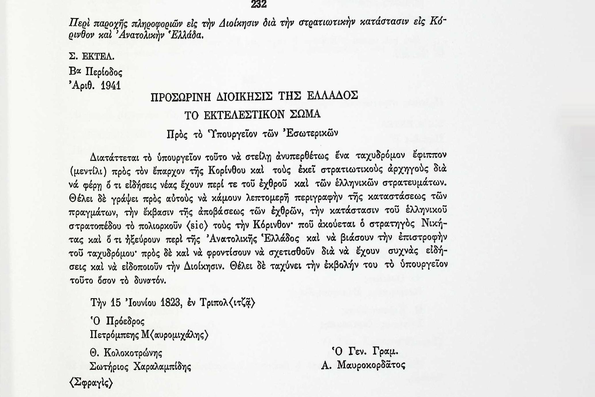 ΑΡΧΕΙΑ ΕΛΛΗΝΙΚΗΣ ΠΑΛΙΓΓΕΝΕΣΙΑΣ, τ.10, σελ.151,αρ.232 «Λυτά Έγγραφα» Α’ & Β’ Βουλευτικής Περιόδου-Έγγραφα Εκτελεστικού Σώματος-Παροχή πληροφοριών για στρατιωτική κατάσταση στην Κόρινθο. Αλ.ΜαυροκορδάτοςΑνατολική ΕλλάδαΒουλευτικό ΣώμαΕκτελεστικό ΣώμαΕλλάδαΘ.ΚολοκοτρώνηςΚορινθίαΚόρινθοςΠ. ΜαυρομιχάληςΠετρόμπεης ΜαυρομιχάληςΣ.ΧαραλάμπηςΣτρατόπεδαΣτρατός-ΣτρατιώτεςΥπουργείο Εσωτερικών
