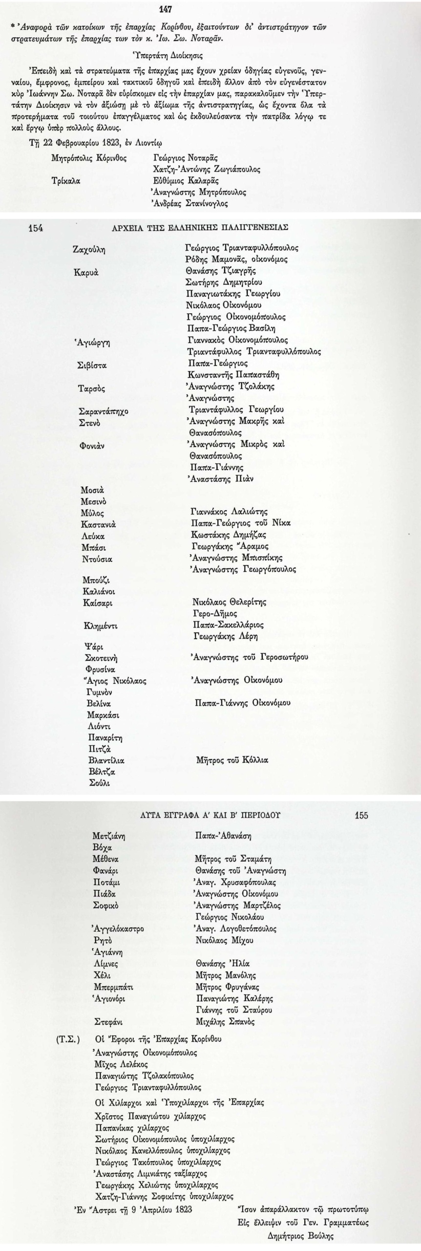 ΑγγελόκαστροΑγιάννηςΑγιονόριΆγιος ΓεώργιοςΆγιος ΝικόλαοςΑναγνώστηςΑναγνώστης ΓεωργόπουλοςΑναγνώστης ΛογοθετόπουλοςΑναγνώστης ΜακρήςΑναγνώστης ΜαρτζέλοςΑναγνώστης ΜητρόπουλοςΑναγνώστης ΜικρόςΑναγνώστης ΜπισπίκηςΑναγνώστης ΟικονομόπουλοςΑναγνώστης ΤζολάκηςΑναγνώστης του ΓεροσωτήρουΑναγνώστης ΧρυσαφόπουλοςΑναστάσης ΛιμνιάτηςΑναστάσης ΠιάνΑνδρέας ΣτανίνογλοςΆστροςΒάλτσαΒελίναΒλαντίλαΒόχαΓερο ΔήμοςΓεωργάκης ΛέρηΓεωργάκης ΧελιώτηςΓεώργιος ΝικολάουΓεώργιος ΝοταράςΓεώργιος ΟικονομόπουλοςΓεώργιος ΤακόπουλοςΓιαννάκος ΛαλιώτηςΓιαννακός ΟικονομόπουλοςΓιάννης του ΣταύρουΕκτελεστικό ΣώμαΕλλάδαΕπαρχίεςΈφοροιΖάχοληΘανάσης ΗλίαΘανάσης του ΑναγνώστηΙωάννης ΝοταράςΚαστανιάΚλημέντιΚόρινθοςΚωνσταντής ΠαπαστάθηςΚωστάκης ΔημήζαςΛεύκαΛίμνεςΛιόντιΜάρκασιΜέθεναΜεσινόΜετζιάνηΜητρόπολη ΚορίνθουΜήτρος ΜανώληςΜήτρος του ΣταμάτηΜήτρος ΦρυγάναςΜιχάλης ΣπανόςΜίχος ΛελέκοςΜπάσιΜπερμπάτιΜπούζιΜύλοςΝικόλαος ΘελερίτηςΝικόλαος ΚανελλόπουλοςΝικόλαος ΜίχουΝικόλαος ΟικονόμουΝτούσιαΠαναγιώτης ΚαλέρηςΠαναγιώτης ΤζολακόπουλοςΠαναρίτιΠαπα ΑθανάσηςΠαπα ΓεώργιοςΠαπα Γεώργιος του ΝίκαΠαπα ΓιάννηςΠαπα Γιάννης ΟικονόμουΠαπα ΣακελλάριοςΠιάδαΠιτσάΠοτάμιΡητόΣαραντάπιχοΣκοτεινήΣούλιΣοφικόΣτεφάνιΣτρατός-ΣτρατιώτεςΣωτήριος ΟικονομόπουλοςΤαρσόςΤριαντάφυλλος ΓεωργίουΤριαντάφυλλος ΤριανταφυλλόπουλοςΥπέρτατη ΔιοίκησηΦανάριΦονιάΦρυσίναΧατζη Γιάννης ΣοφικίτηςΧατζηαντώνης ΖωγιάπουλοςΧέλιΨάρι