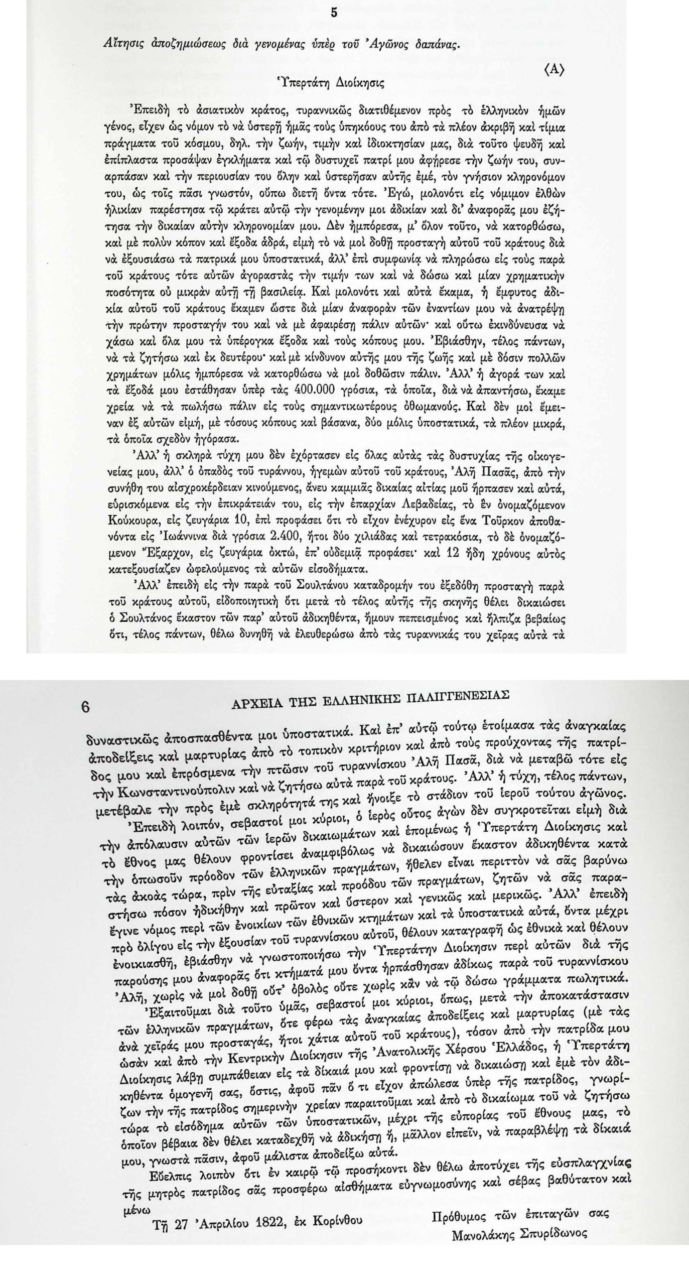 ΑΡΧΕΙΑ ΕΛΛΗΝΙΚΗΣ ΠΑΛΙΓΓΕΝΕΣΙΑΣ, τ.11, σελ.5,αρ.5 «Λυτά Έγγραφα» Α’ & Β’ Βουλευτικής Περιόδου-Έγγραφα προς την Υπέρτατη Διοίκηση-Αίτημα αποζημίωσης για έξοδα υπέρ του Αγώνα. Αλή ΠασάςΑνατολική Στερεά ΕλλάδαΓρόσιαΕπαρχίεςΙωάννιναΚεντρική ΔιοίκησηΚορινθίαΚόρινθοςΛειβαδειάΟθωμανοί-ΤούρκοιΣπυρίδων ΜανωλάκηςΥπέρτατη Διοίκηση