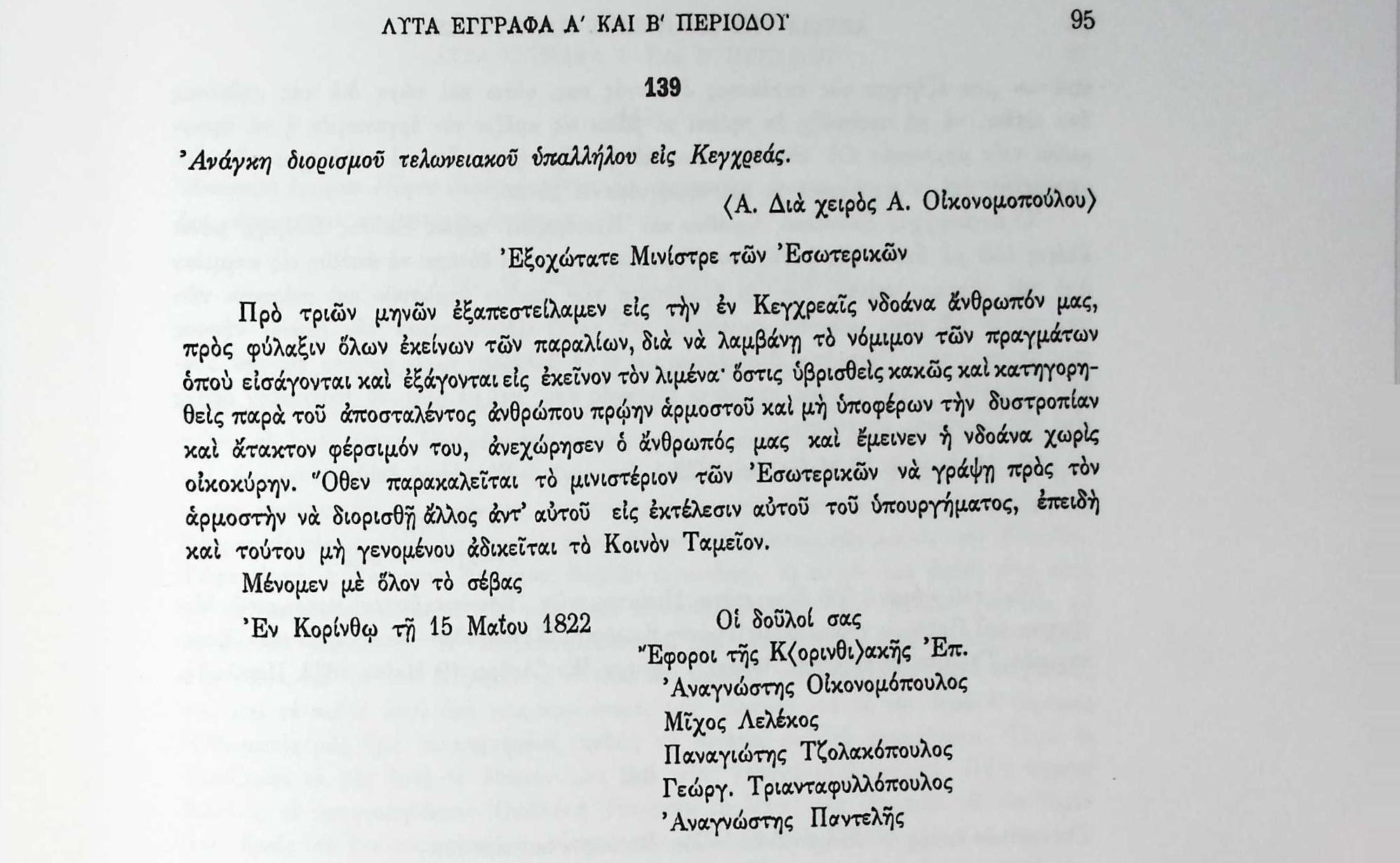ΑΡΧΕΙΑ ΕΛΛΗΝΙΚΗΣ ΠΑΛΙΓΓΕΝΕΣΙΑΣ, τ.13, σελ.95,αρ.139 «Λυτά Έγγραφα» Α’ & Β’ Βουλευτικής Περιόδου-Έγγραφα Υπουργείου Εσωτερικών-Ανάγκη διορισμού υπαλλήλου στο λιμάνι των Κεχρεών. Αναγνώστης ΟικονομόπουλοςΑναγνώστης ΠαντελήςΑρμοστήςΓεωρ. ΤριανταφυλλόπουλοςΓεώργιος ΤριανταφυλλόπουλοςΕλλάδαΈφοροιΚεχριέςΚοινό ΤαμείοΚορινθίαΚόρινθοςΜίχος ΛελέκοςΠαναγιώτης ΤζολακόπουλοςΥπουργείο Εσωτερικών