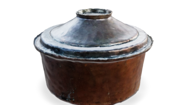 Παλιά χάλκινη κανάτα με χερούλι και με καπάκι. Ελληνικό χειροποίητο σκεύος.