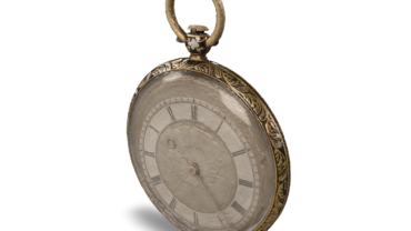 Το ρολόι τσέπης με γυαλί δεν προστατεύεται από θήκη. Το καντράν είναι ασημί, χαραγμένο με βελόνα, ασύμμετρο. Το γυαλί έχει κεντρική κοπή. Η…