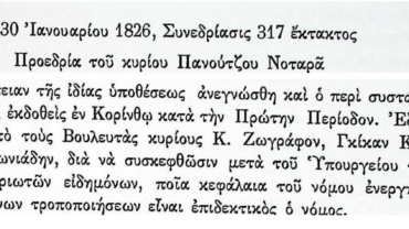 View ΑΡΧΕΙΑ ΕΛΛΗΝΙΚΗΣ ΠΑΛΙΓΓΕΝΕΣΙΑΣ, τ.7, σελ.433 Πρακτικά τακτικών συνεδριάσεων Βουλευτικού Σώματος Γ’Περιόδου- 30 Ιανουαρίου 1826-Σχετικά με τον εκδοθέντα στην Κόρινθο Τακτικό Νόμο Η'.