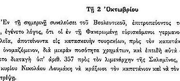 Στη συνέλευση της 23ης Φεβρουαρίου παρουσιάζεται το προβούλευμα του Βουλευτικού Σώματος για την αποστολή επιτροπής στην Ευρώπη για τη συμμετοχή στις συζητήσεις των Βασιλείων σχετικά με το Ελληνοτουρκικό ζήτημα.