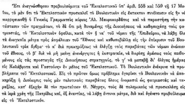 Η ομιλία του Αλ. Μαυροκορδάτου μετά την αποδοχή της εκλογής του ως Προέδρου του Βουλευτικού Σώματος.