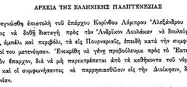View ΑΡΧΕΙΑ ΕΛΛΗΝΙΚΗΣ ΠΑΛΙΓΓΕΝΕΣΙΑΣ-2-14 Ιουνίου 1824,παρ.5 Στη συνέλευση της 14ης Ιουνίου 1824 διαβάστηκε επιστολή για την καλλιέργεια σταφίδας, αμπελιού και περιβολικών από έναν μόνο καλλιεργητή γιατί οι υπόλοιποι υπαναχώρησαν.