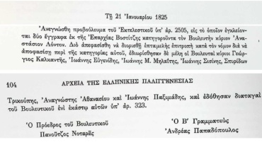 Πρακτικά τακτικών συνεδριάσεων Βουλευτικού Σώματος Γ’Περιόδου-21 Ιανουαρίου 1825-Ορισμός επιτροπής ελέγχου κατηγοριών κατά Αναστασίου Λόντου.