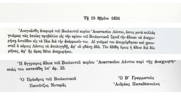 Πρακτικά τακτικών συνεδριάσεων Βουλευτικού Σώματος Γ’Περιόδου-3 Ιανουαρίου 1825-Αίτηση Αναστάσιου Λόντου.