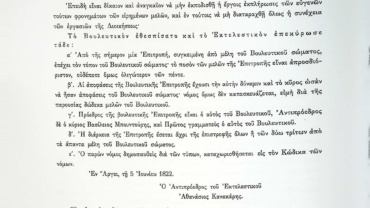 Στην παρούσα επιστολή της 26ης Φεβρουαρίου 1823 η Διοίκηση έφθασε στο Ναύπλιο αλλά δεν της επετράπη η είσοδος και παρέμεινε για είκοσι δύο ημέρες στο πλοίο. Ενημερώνει πως θα μεταβεί στην Αίγινα για να τακτοποιήσει από εκεί τα του πολέμου.