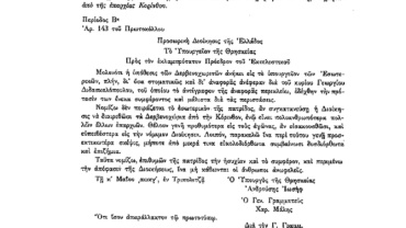 Με την παρούσα επιστολή το Υπ. Θρησκείας (παρ. 338-Α.Π. 143) εισηγείται το διαχωρισμό των Δερβενοχωρίων από την Επαρχία Κορίνθου.