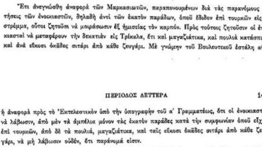 Στη συνέλευση της 1ης Σεπτεμβρίου 1823 διαβάστηκε αναφορά παραπόνων των κατοίκων της περιοχής Μάρκασι Κορινθίας σχετικά με τις απαιτήσεις των ενοικιαστών γης.