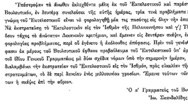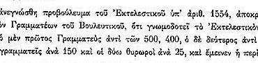 Στη συνέλευση της 9ης Ιουνίου 1823 διαβάστηκε προβούλευμα με τους μισθούς των Γραμματέων του Βουλευτικού Σώματος.