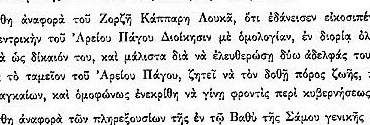 Στη συνέλευση της 2ας Μαΐου 1823 διαβάστηκε αναφορά του Ζορζή Κάππαρη Λουκά, ο οποίος ζητά να του επιστραφούν χρήματα που είχε δανείσει με ομολογία στην κεντρική διοίκηση του Αρείου Πάγου.