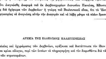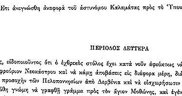 Ο Αστυνόμος Καλαμάτας ενημερώνει το Υπουργείο Αστυνομίας για επικείμενη επίθεση του εχθρικού στρατού στο φρούριο του Νεόκαστρου.