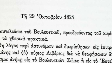 Πρακτικά Βουλευτικού Σώματος Γ’Περιόδου- 1η Οκτωβρίου 1824