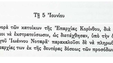 Πρακτικά τακτικών συνεδριάσεων Βουλευτικού Σώματος Γ’Περιόδου-05 Ιουνίου 1825-Συμμετοχή των κατοίκων της επαρχίας Κορίνθου στην εκστρατεία, υπό τον Ιωάννη Νοταρά.