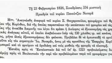 Πρακτικά τακτικών συνεδριάσεων Βουλευτικού Σώματος Γ’Περιόδου-23 Φεβρουαρίου 1826-Συνεδρίαση 334 μυστική-Σχετικά με το Φρούριο της Κορίνθου.