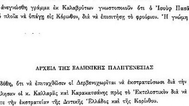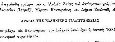 Στη συνέλευση της 7ης Σεπτεμβρίου διαβάστηκε γράμμα για την βοήθεια που ζητάται να στείλουν οι Πελοποννήσιοι για την επικείμενη μάχη του Καρπενησίου.
