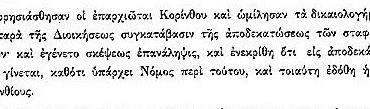 Στη συνέλευση της 18ης Σεπτεμβρίου διαβάστηκε αναφορά Κορινθίων να του χαρισθεί ο φόρος της δεκάτης επί της σταφίδας.