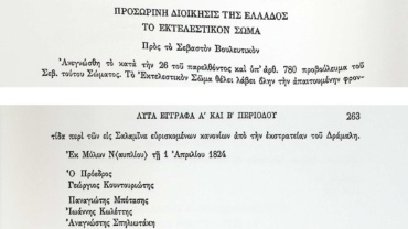 Πρακτικά τακτικών συνεδριάσεων Βουλευτικού Σώματος Γ’Περιόδου- 10 Ιουνίου 1825-Σχετικά με τη χρηματική συνεισφορά μοναστηριών για την κατασκευή πυρπολικών για χρήση στον Κορινθιακό Κόλπο.
