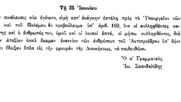 View ΑΡΧΕΙΑ ΕΛΛΗΝΙΚΗΣ ΠΑΛΙΓΓΕΝΕΣΙΑΣ-2-25 Ιουνίου 1823 Την 25η Ιουνίου 1823 εστάλη προβούλευμα προς τα Υπουργεία Εσωτερικών & Πολέμου σχετικά με επίθεση που έγινε στους ανθρώπους του Στρατηγού Θ. Κολοκοτρώνη.