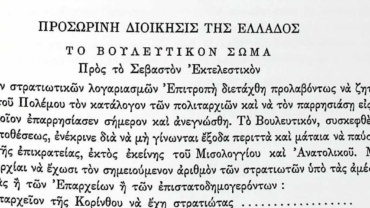 «Λυτά Έγγραφα» Α’ & Β’ Βουλευτικής Περιόδου-Έγγραφα Εκτελεστικού Σώματος-Κατανομή στρατιωτών & οργάνωση άμυνας.