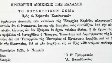 «Λυτά Έγγραφα» Α’ & Β’ Βουλευτικής Περιόδου-Έγγραφα Εκτελεστικού Σώματος-Αίτημα κατοίκων Κορινθίας για αντιστρατηγία της Επαρχίας Κορίνθου στον Ιωάννη Νοταρά.