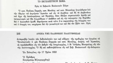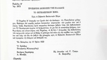 «Λυτά Έγγραφα» Α’ & Β’ Βουλευτικής Περιόδου-Έγγραφα Εκτελεστικού Σώματος-Μεταφορά Εκτελεστικού Σώματος από το Σοφικό στη Σαλαμίνα.