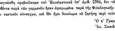 Στη συνέλευση της 1ης Σεπτεμβρίου 1823 διαβάστηκε προβούλευμα του Εκτελεστικού Σώματος για τον οπλισμό των Γερμανών που ήταν αφιερωμένος στη Φιλελληνική Εταιρία.