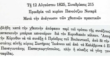 Πρακτικά τακτικών συνεδριάσεων Βουλευτικού Σώματος Γ’Περιόδου-12 Αυγούστου 1825-Συγκέντρωση χρημάτων για την κατασκευή πυρπολητικών πλοίων για φρούρηση του Κορινθιακού Κόλπου.