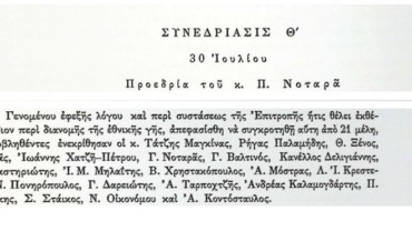 Συνέχεια των Πρακτικών της Δ' Εθνοσυνέλευσης-Συνεδρίαση Θ'-30 Ιουλίου-Σύσταση επιτροπής για τη διανομή της Εθνικής Γης.
