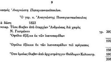 View ΑΡΧΕΙΑ ΕΛΛΗΝΙΚΗΣ ΠΑΛΙΓΓΕΝΕΣΙΑΣ-16-13 Ιανουαρίου 1823-Λογαριασμός Αναγνώστη Παπαγιαννακόπουλου Λογαριασμός εσόδων και εξόδων του Αναγνώστη Παπαγιαννακόπουλου.