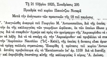 Μυστικές Συνεδριάσεις Βουλευτικού Σώματος Γ’ Περιόδου, 15 Ιανουαρίου 1826-Συνεδρίαση 307-Σχετικά με τον εφοδιασμό του Φρουρίου Ακροκορίνθου σε τρόφιμα και άλλα αναγκαία καθώς και δάνειο για τους μισθούς των στρατιωτών.