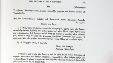 «Λυτά Έγγραφα» Α’ & Β’ Βουλευτικής Περιόδου-Έγγραφα ιδιωτών προς Πελοποννησιακή Γερουσία-Ο Ανδρέας Καλαμογδάρτης ενημερώνει την Πελοποννησιακή Γερουσία για τη συγκέντρωση χρημάτων και για την μετάβαση στρατιωτών στο στρατόπεδο της Κορίνθου.