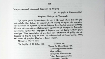 «Λυτά Έγγραφα» Α’ & Β’ Βουλευτικής Περιόδου-Έγγραφα Υπουργείου Εσωτερικών-Πληροφορίες από τον Έπαρχο Κορίνθου σχετικά με τη στρατιωτική κατάσταση.